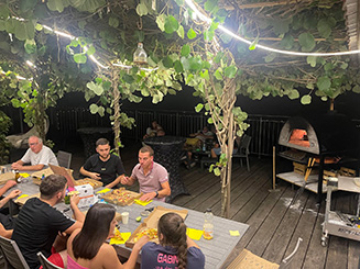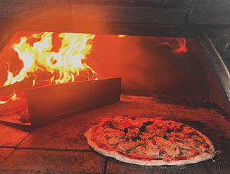 PIZZAS CUITES AU FEU DE BOIS à consommer sur place sur la terrasse de la piscine ou emportées